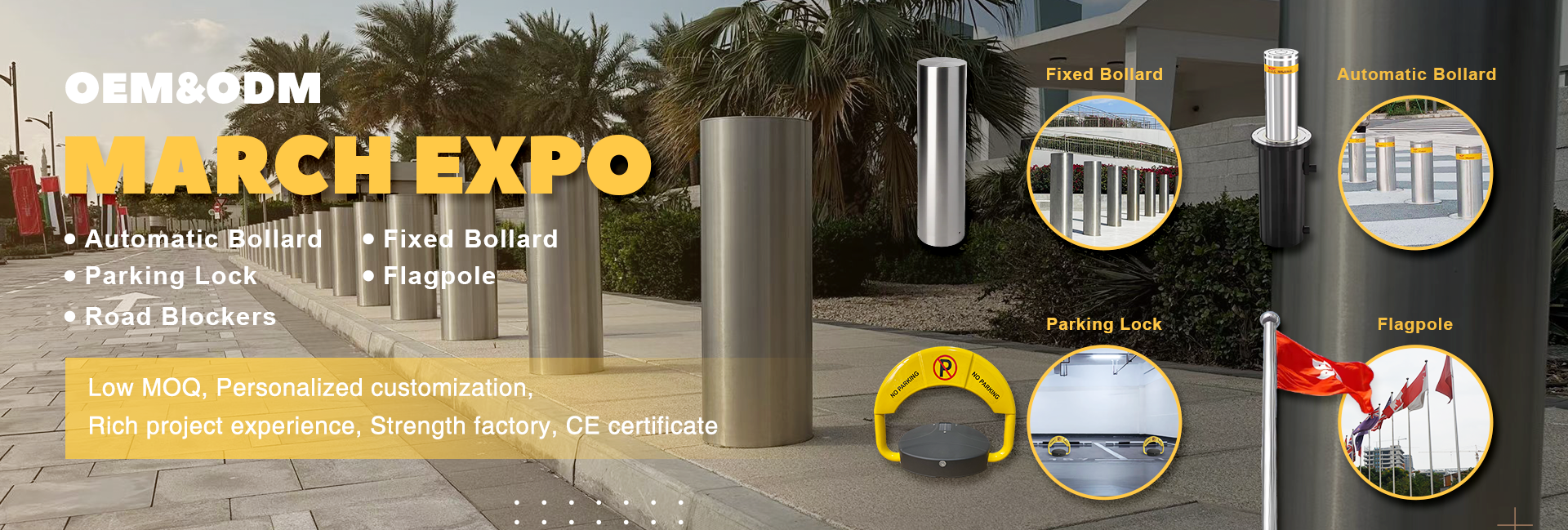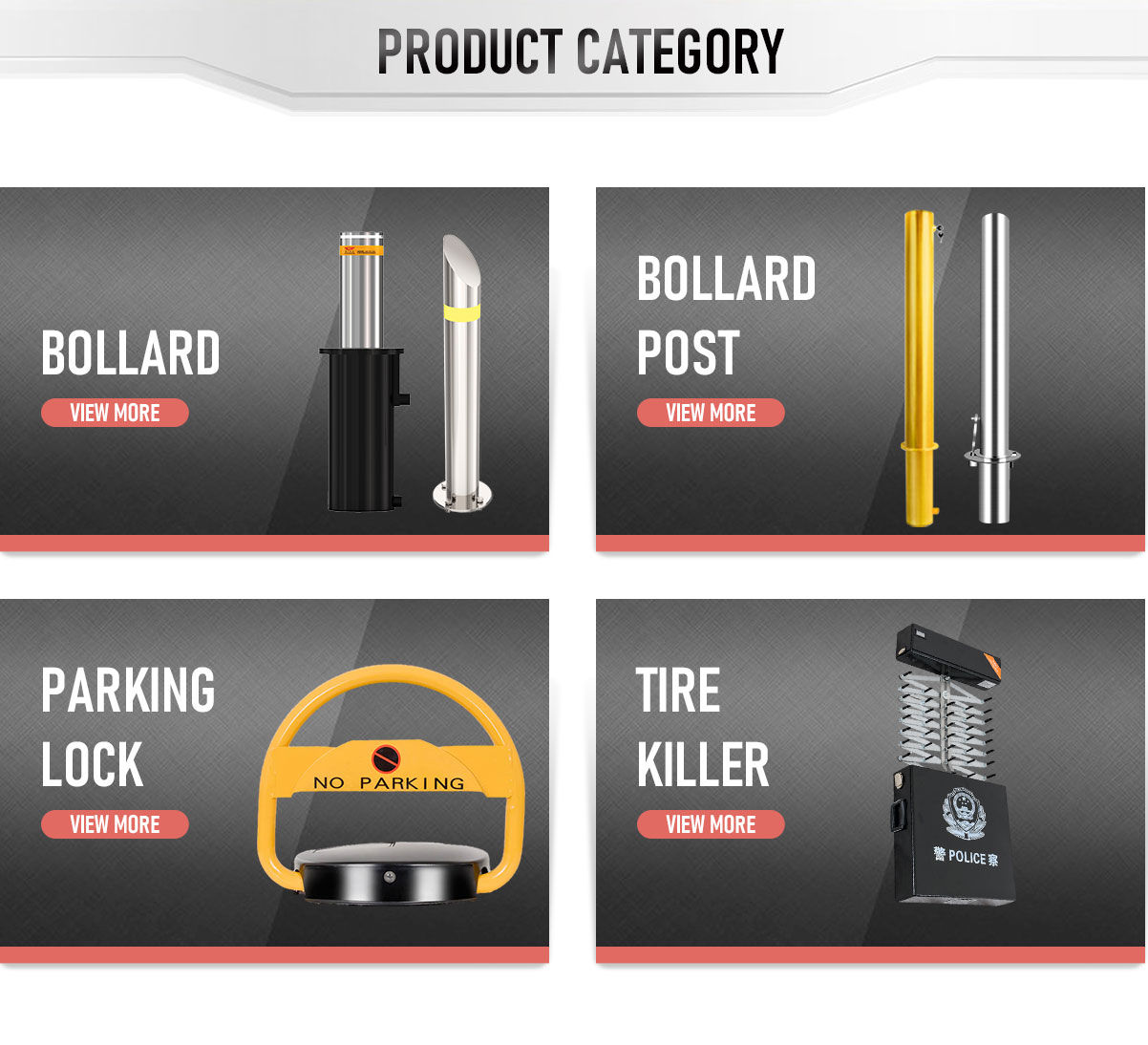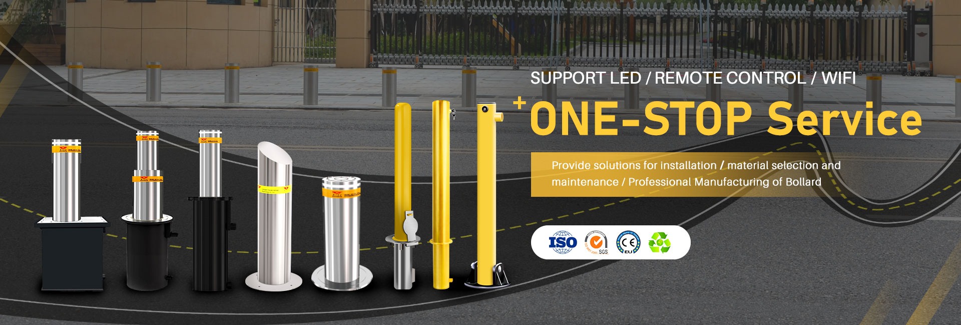 Principais produtos:Bollard automático, mastro de bandeira, bloqueio de estacionamento, poste de amarração, bloqueador de estrada